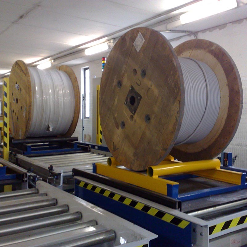 Автоматический центр намотки мотков с убирающимся устройством для намотки мотков с автоматическим открытием лучей сдерживания Ø1000 мм ширина 90÷200 мм внутренняя сердцевина 320 мм фиксированная (возможность 520 мм фиксированная), автоматическое зацепление кабеля педалью, 3 обвязки под 120°, выполняемые вручную (Поз. [6A] в технической карте)